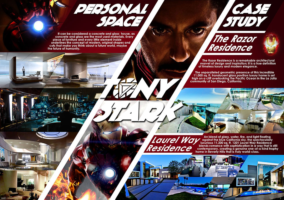 Second assignment were given right away after the submission of the first assignment, we were required to pick a famous person and to design a container house that is suitable for them to live in. I picked Tony Stark from the movie "Iron Man" after the lastest movie were released. When it comes to Tony Stark, the first thing that cam einto my mind was technology, which led me to designing a futuristic home which suites him best. Below are the presentation boards done by me which includes the characteristics of Tony Stark, case studies, site analysis, as well as my drawings.